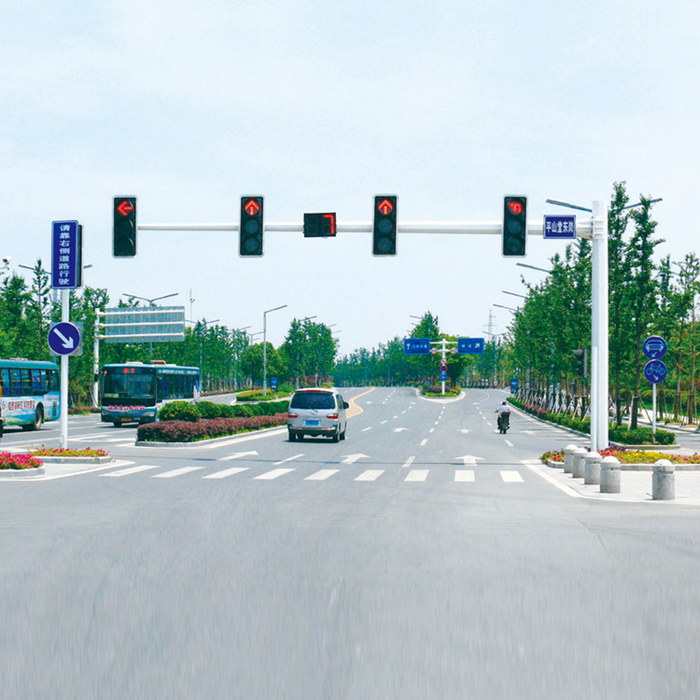 杆件:灯杠为等边八角形材料结构,外型美观大方。杆体热镀锌,20年不生锈(表面或喷塑,颜色可选) 杆高:6800mm 臂长:3000mm~20000mm 主杆:扁八角型,壁厚5mm~12mm 横杆:扁八角型,壁厚4mm~8mm 灯面直径:Φ300mm或Φ400mm 色度:红色(620-625)绿色(504-508)黄色(590-595) 工作电源:170V~260V,50Hz 额定功率:单灯<20W 光源使用寿命:>50000小时 环境温度:-40℃~+80℃ 防护等级:IP55