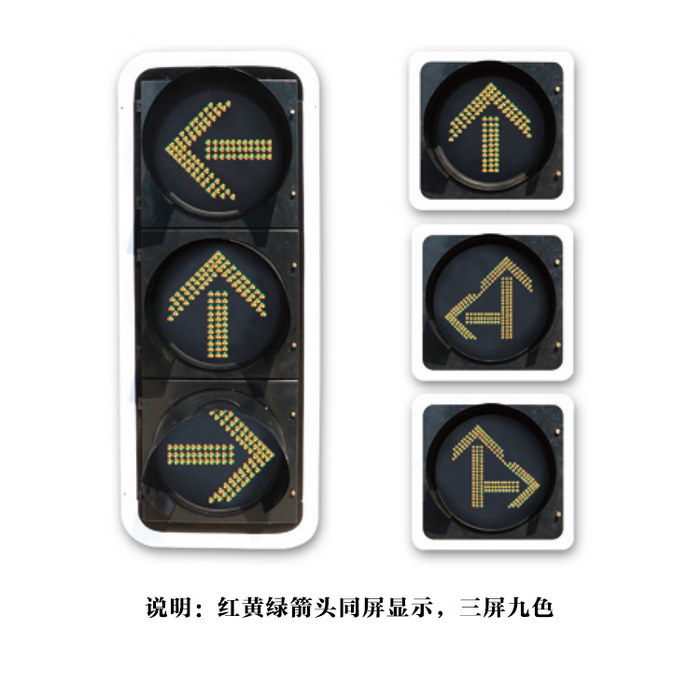 产品特点 光源采用进口超高亮度LED。灯壳采用一次性铝压铸或工程塑料(PC)注塑成型,灯盘发光面直径为300mm、400mm。灯体可任意组合和横竖安装。发光单元三色各项技术参数均符合中华人民共和国道路交通信号灯GB14887-2011标准。