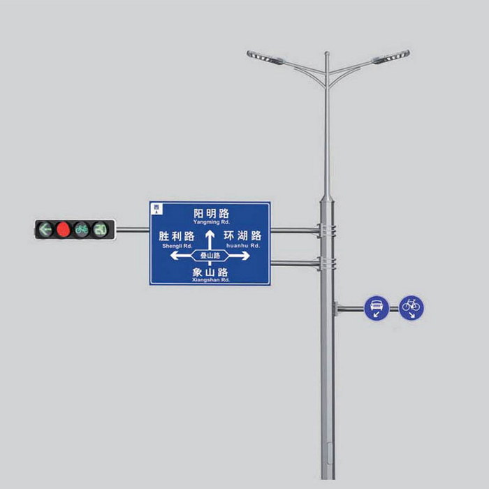 多杆合一是以道路照明杆为基础,对城市道路已有的交通设施进行整合,一般包括信号灯、监控、交通标志牌、路名牌等。整体杆件将减少60%左右,可大大提升城市空间的视觉舒适度,减少各单位立杆的成本,从而将大幅度降低市政支出,真正实现城市节能美观一体化。