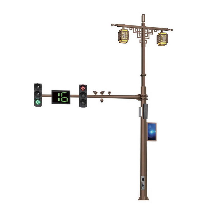 多杆合一是以道路照明杆为基础,对城市道路已有的交通设施进行整合,一般包括信号灯、监控、交通标志牌、路名牌等。整体杆件将减少60%左右,可大大提升城市空间的视觉舒适度,减少各单位立杆的成本,从而将大幅度降低市政支出,真正实现城市节能美观一体化。