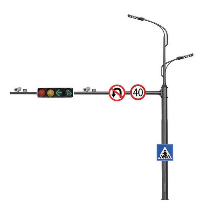 多杆合一是以道路照明杆为基础,对城市道路已有的交通设施进行整合,一般包括信号灯、监控、交通标志牌、路名牌等。整体杆件将减少60%左右,可大大提升城市空间的视觉舒适度,减少各单位立杆的成本,从而将大幅度降低市政支出,真正实现城市节能美观一体化。