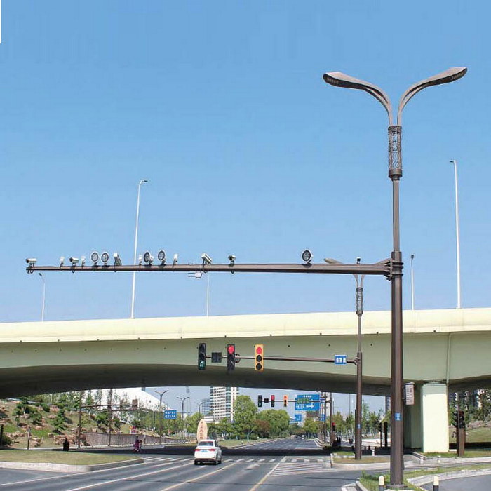 多杆合一是以道路照明杆为基础,对城市道路已有的交通设施进行整合,一般包括信号灯、监控、交通标志牌、路名牌等。整体杆件将减少60%左右,可大大提升城市空间的视觉舒适度,减少各单位立杆的成本,从而将大幅度降低市政支出,真正实现城市节能美观一体化。