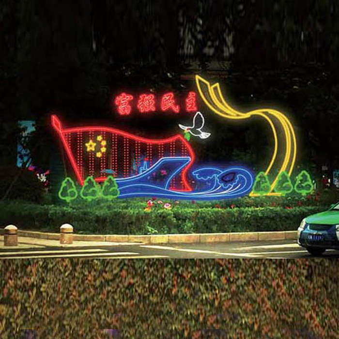 - 亮化灯具有:点光源,线条灯,洗墙灯,壁灯,泛光灯,投光灯等系列产品。亮度LED作为光源,有单色、双色、RGB等多种颜色,通过IC芯片控制,可实流水、渐变、跳变、追逐 实现渐变、跳变、色彩闪烁、随机闪烁、渐变交替、追逐、扫描等颜色变化。